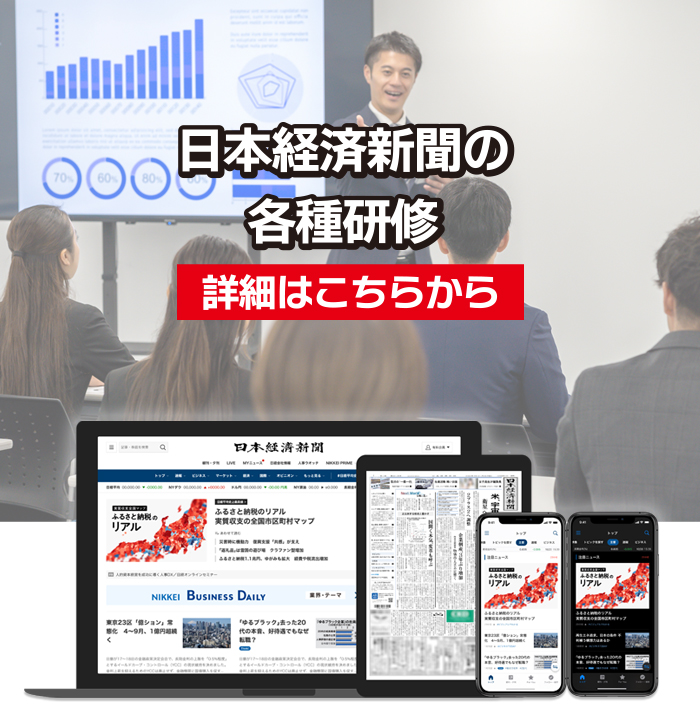 日本経済新聞社が提供する社員研修用講座(日経読み方講座・新入社員研修ほか)や日経TESTを活用した講座など豊富に取り揃えています。お気軽にお問い合わせください。